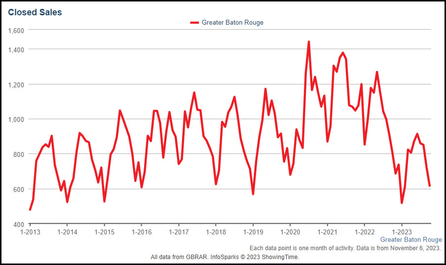 Data Source: ROAM Greater Baton Rouge Association of REALTORS/MLS 01/01/2019 to 10/31/2023, extracted 11/06/2023.