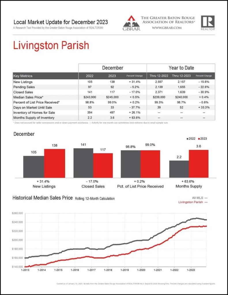 Abbreviated Summary for Livingston Parish Greater Baton Rouge December 2023 Housing Market: