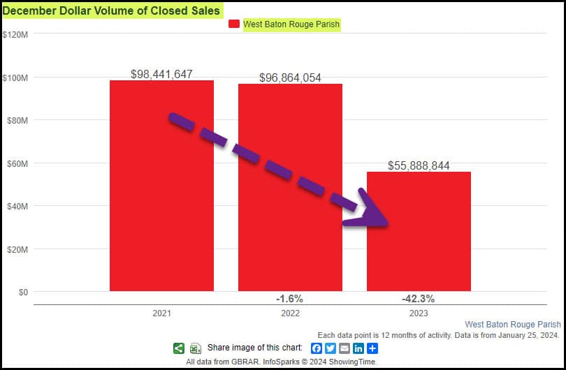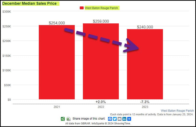 West Baton Rouge December 2022 vs December 2023 Home Sales Stats