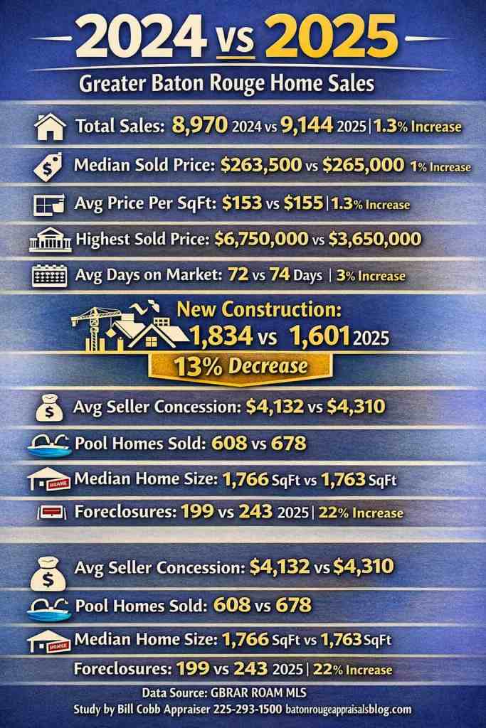 This still is the result of high mortgage rates and most importantly, HIGH HOMEOWNER’S INSURANCE RESETS (ever increasing). Local Assessor’s reassessing resulting in higher property taxes is also a culprit. If you include inflation for everything, THERE IS A SQUEEZE AROUND THE NECKS OF LOCAL HOMEOWNERS straining them so tightly, to where some are losing their homes. When they purchased their homes, they could afford them. It’s not because they were irresponsible with their finances. The rising cost of everything is a fact not all are keeping up with and more Baton Rougeons will lose their homes in 2026.